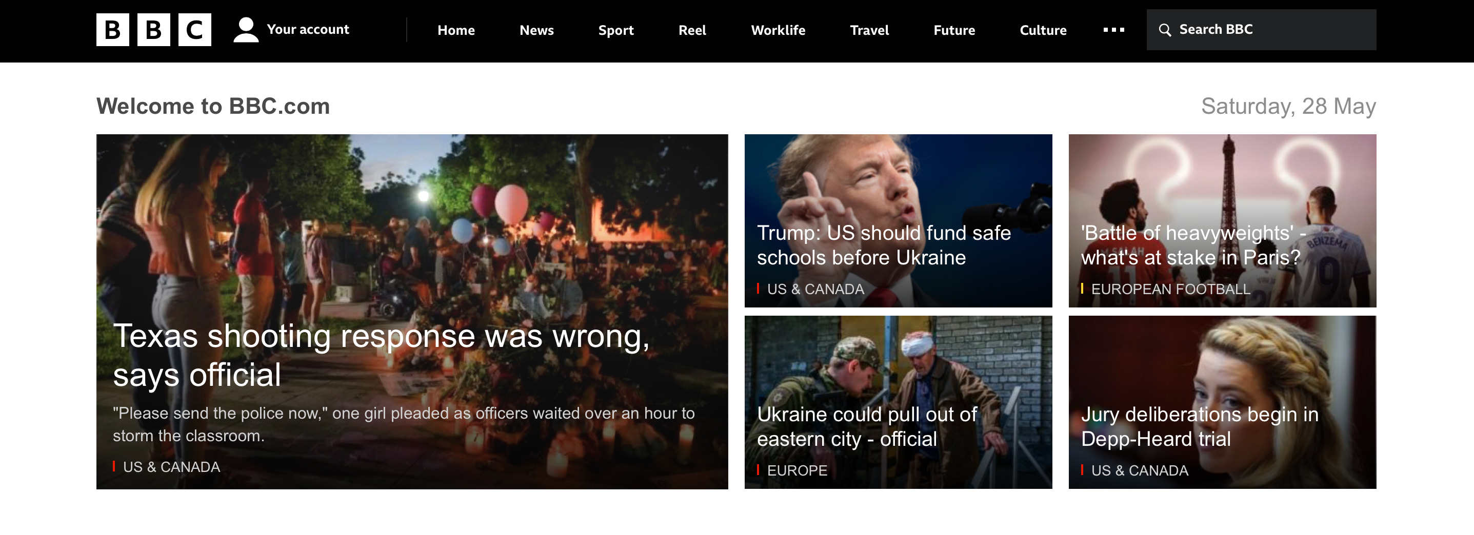 Here’s another screenshot of BBC.com on Saturday morning (U.S. time):