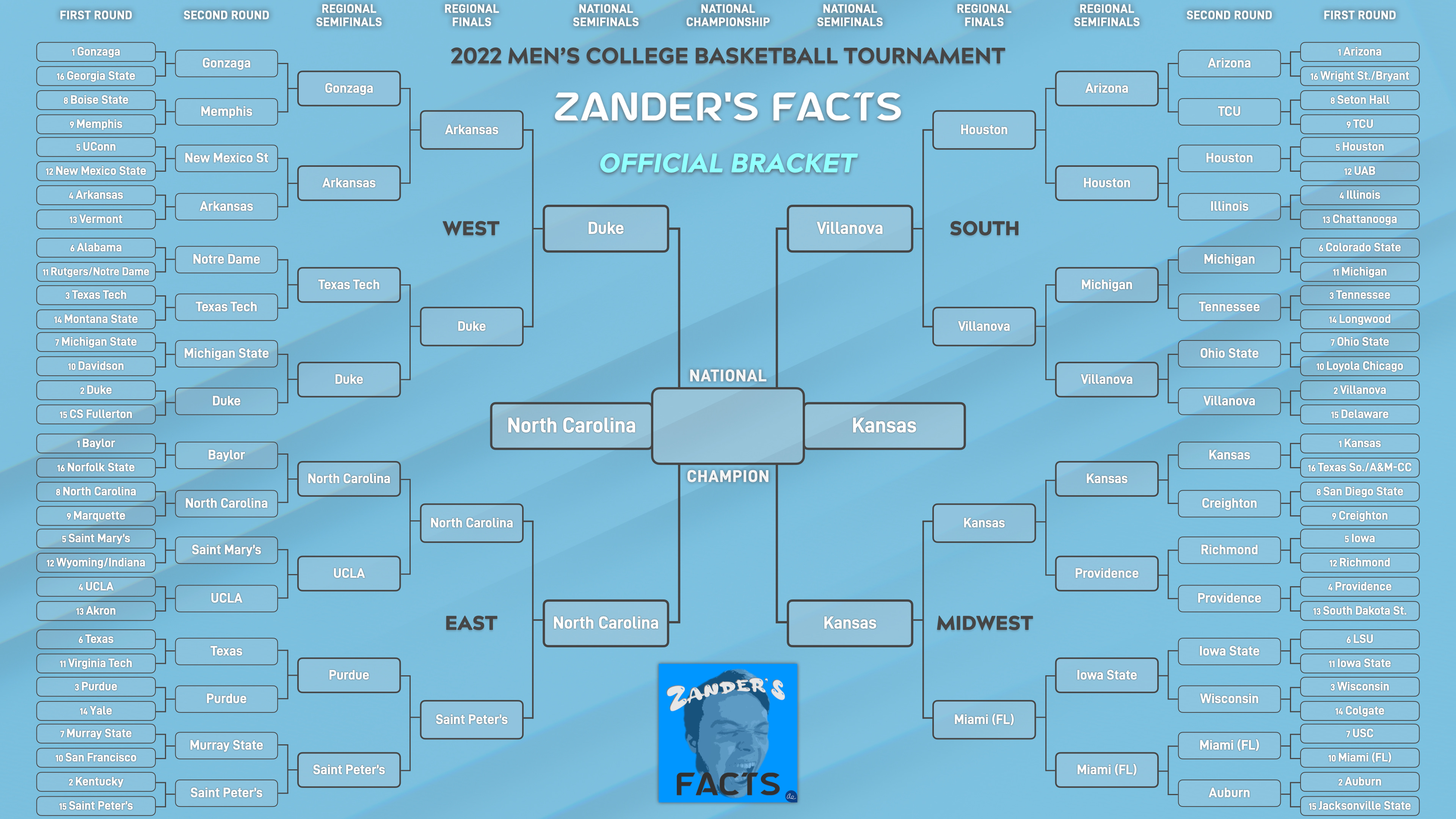 Also, you should go listen to Episode 58 of the Zander’s Facts Podcast! This week, I made my Final Four picks and broke down the matchups, so you can check out my final game prediction from Wednesday. Plus, a breakdown of the teams who have qualified for the 2022 World Cup, and a quick look at the debate over transgender athletes participating in sports. Download and listen to the Zander’s Facts Podcast wherever you get your podcasts!