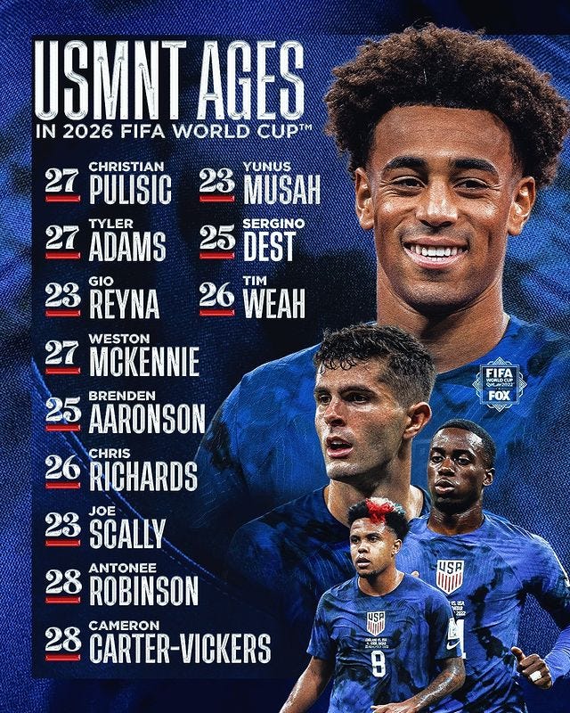 The U.S. men came into this tournament with the second-youngest roster in this tournament to Ghana. With the youngest that made the knockouts. You may not know this, but Christian Pulisic? He’s 24. The captain Tyler Adams? 23. Sergiño Dest? 22. Yunus Musah? 20. Tim Weah? 22. Tim Ream? 35. Ok, maybe that doesn’t count, but he was still awesome these past two weeks.