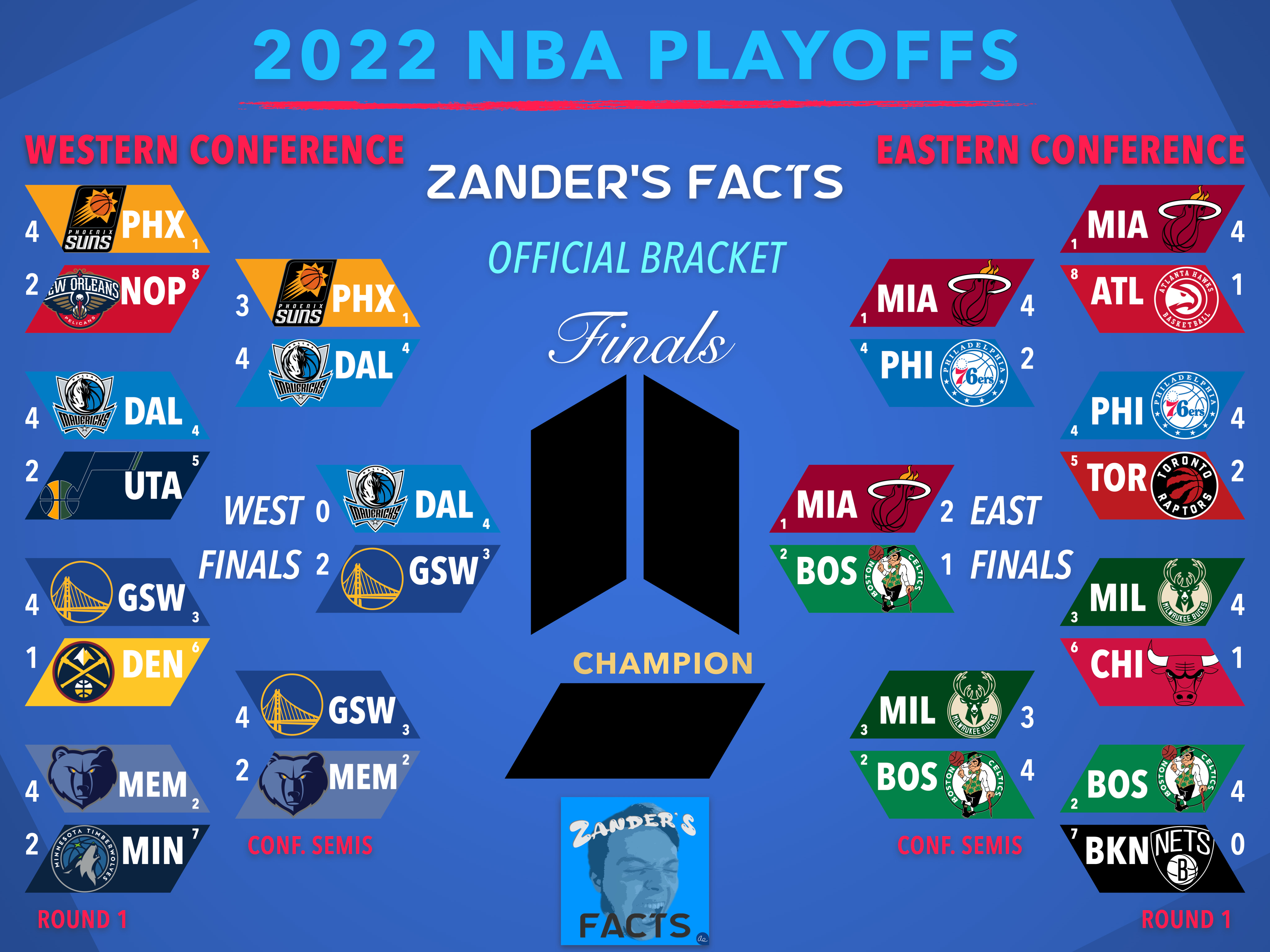 The Conference Finals have begun as only four teams remain in the NBA Playoffs. In the Eastern Conference, the Miami Heat currently lead the Boston Celtics two games to one after winning game three on Saturday night. Game four will take place Monday night at 8:30 pm et on ABC, with the remaining games in the series airing on ESPN. In the Western Conference, the Golden State Warriors currently lead the Dallas Mavericks two games to zero. Game three will take place tonight at 9:00 pm et on TNT, with all games in that series airing on TNT. The first team in each series to win four games will clinch a spot in the NBA Finals, which will begin on Thursday, June 2. Make sure to tune into next week’s edition of the Zander’s Facts podcast, as ZF NBA analyst Hill Billy will join to preview the matchup in the championship round.