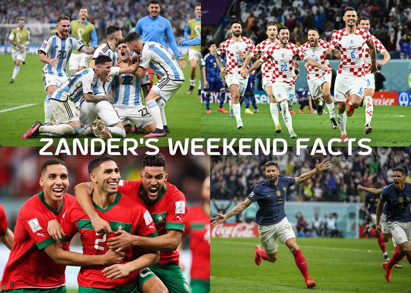 Starting with Argentina-Croatia. It was thought that Croatia had reached their high in 2018, but maybe not. Luka Modric, at 37 years old, is playing like he’s 25, and the players around him look better than ever. Croatia have been an absolute joy to watch in this World Cup. But on the other side, you have one of the greats in Lionel Messi. Out of the four big names making their final World Cup appearances (Messi, Neymar, Ronaldo, Suarez) only Messi remains. Almost blowing a 2-0 lead in the Quarters is concerning, and they better hope they don’t get to penalties against Croatia. My prediction: Argentina 3 - Croatia 2