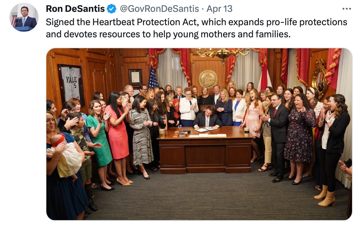 Now, DeSantis did return to the state of Florida shortly after, but not to Fort Lauderdale. Instead, DeSantis signed a bill that would ban abortion in the state after six weeks, an act opposed by the majority of his constituents.
