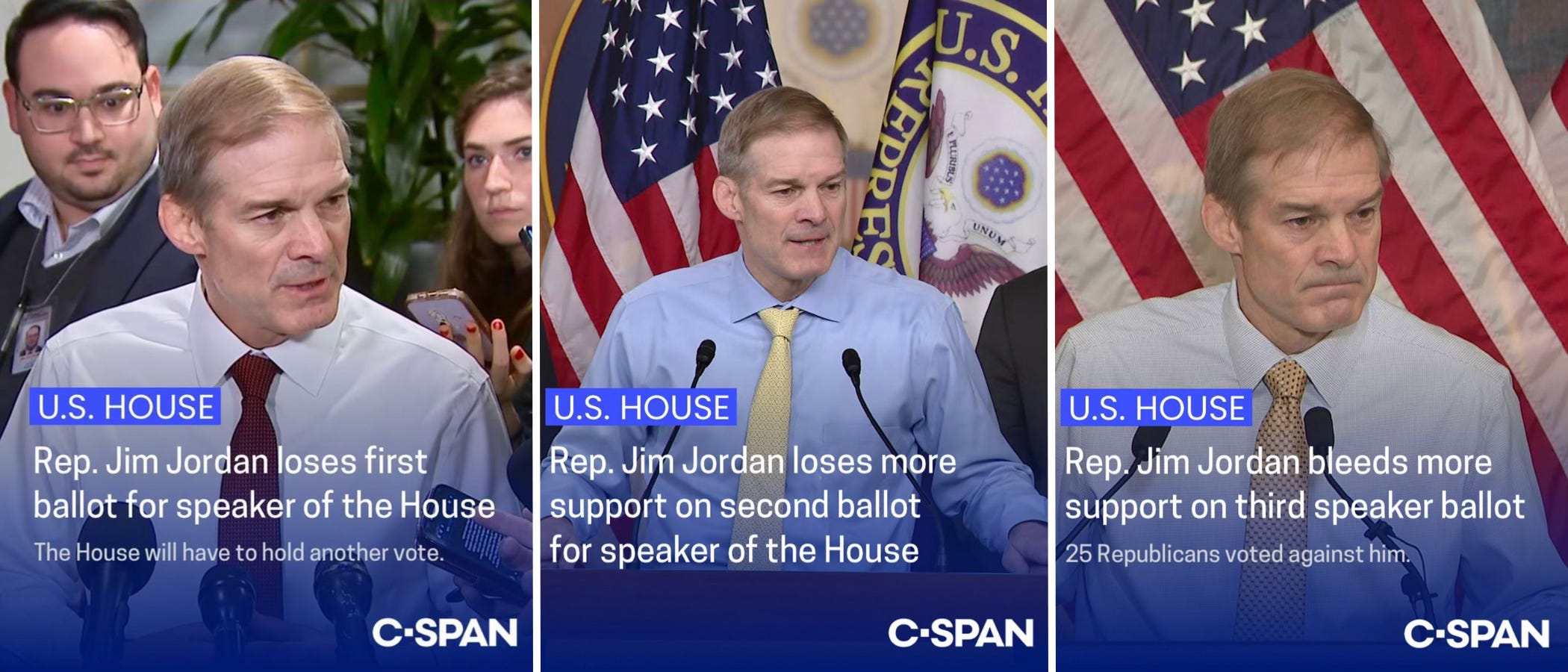 But as C-SPAN’s graphics show, it did not go well for Jordan. In fact, it actually kept getting worse the more times he tried to force votes:
